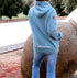 Sudadera tipo hoodie con capucha y bolsillo, 100% benéfica en verde azulado con el lema #just be free perfecta para verano, con la misma calidad de siempre fabricada en Portugal.